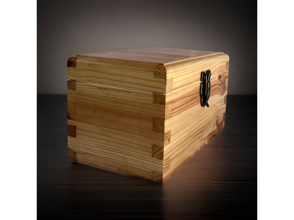 Vyrobená z masívneho borovicového dreva, ktoré vyniká svojou prírodnou textúrou a vôňou. Dodáva krabičke nadčasový vzhľad a pocit autenticity.